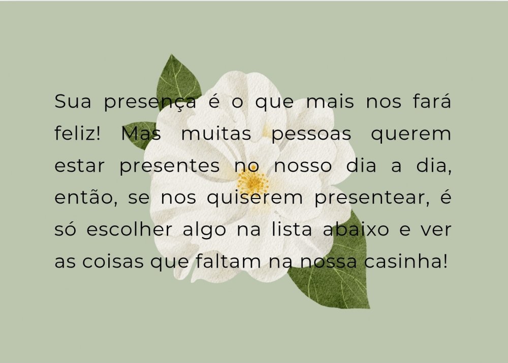 *Se desejar, a noiva disponibiliza a chave Pix, só entrar em contacto via whatsapp *